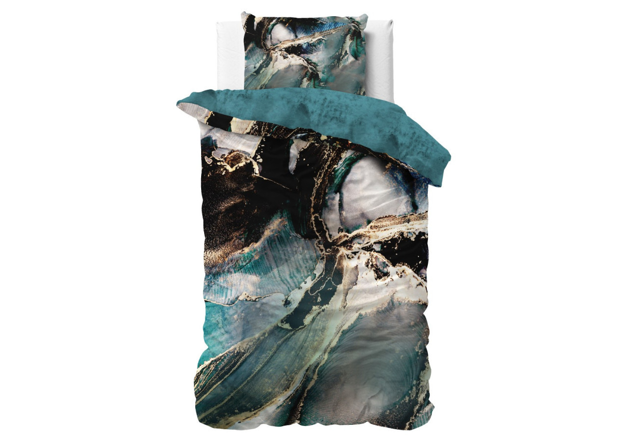 Son motif marbre en couleurs profondes sur fond neutre crée une ambiance apaisante, idéale pour une décoration moderne. La housse mesure 240 cm de longueur et est équipée de boutons-pression pour un maintien optimal.