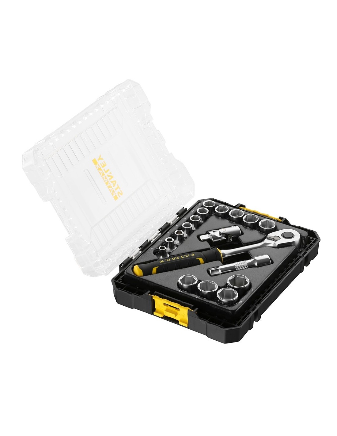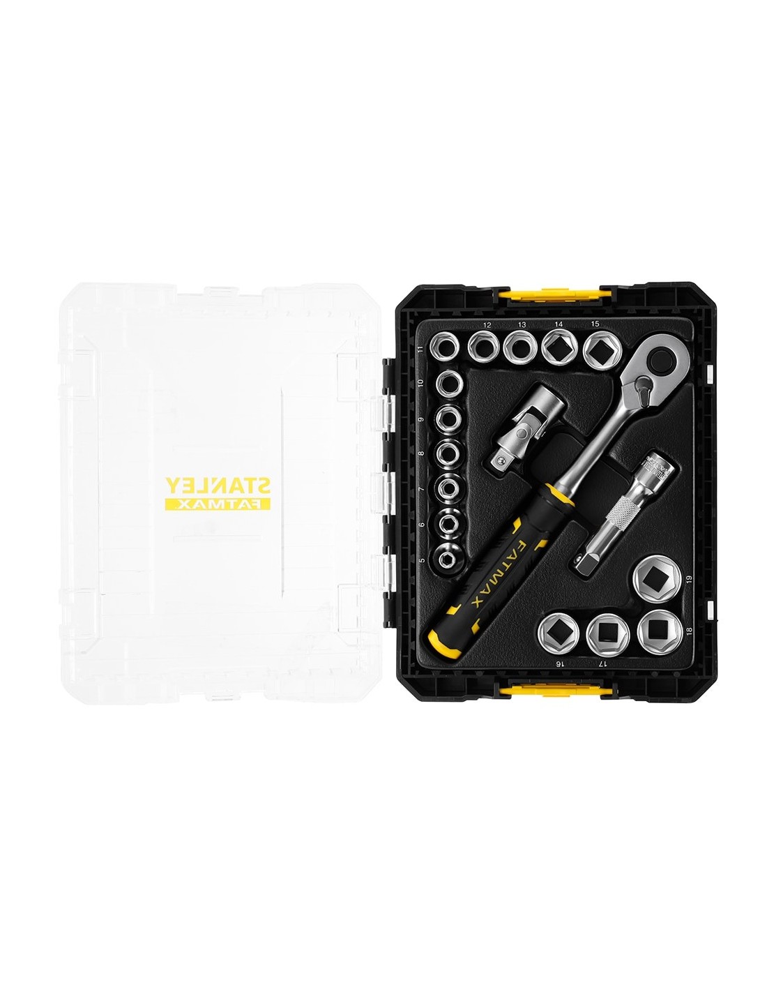 - COMPLÈTE : 1 Cliquet 120 dents 3/8’’ FATMAX-15 Douilles 3/8” (6 pans) : 5 – 6 – 7 – 8 – 9 – 10 – 11 – 12 – 13 – 14 – 15 – 16 – 17 – 18 – 19 mm-1 Rallonge 3/8’’ : 75 mm-1 Cardan universel 3/8’’