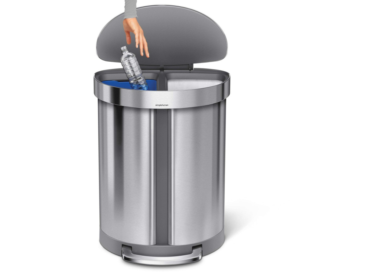 Découvrez la poubelle Liner Pocket demi-rond de 55 L, alliant innovation et esthétique. Fabriquée en acier inoxydable, elle dispose d'un compartiment intégré pour ranger vos sacs poubelles Simplehuman, assurant ainsi un accès facile et un rangement soigné.
