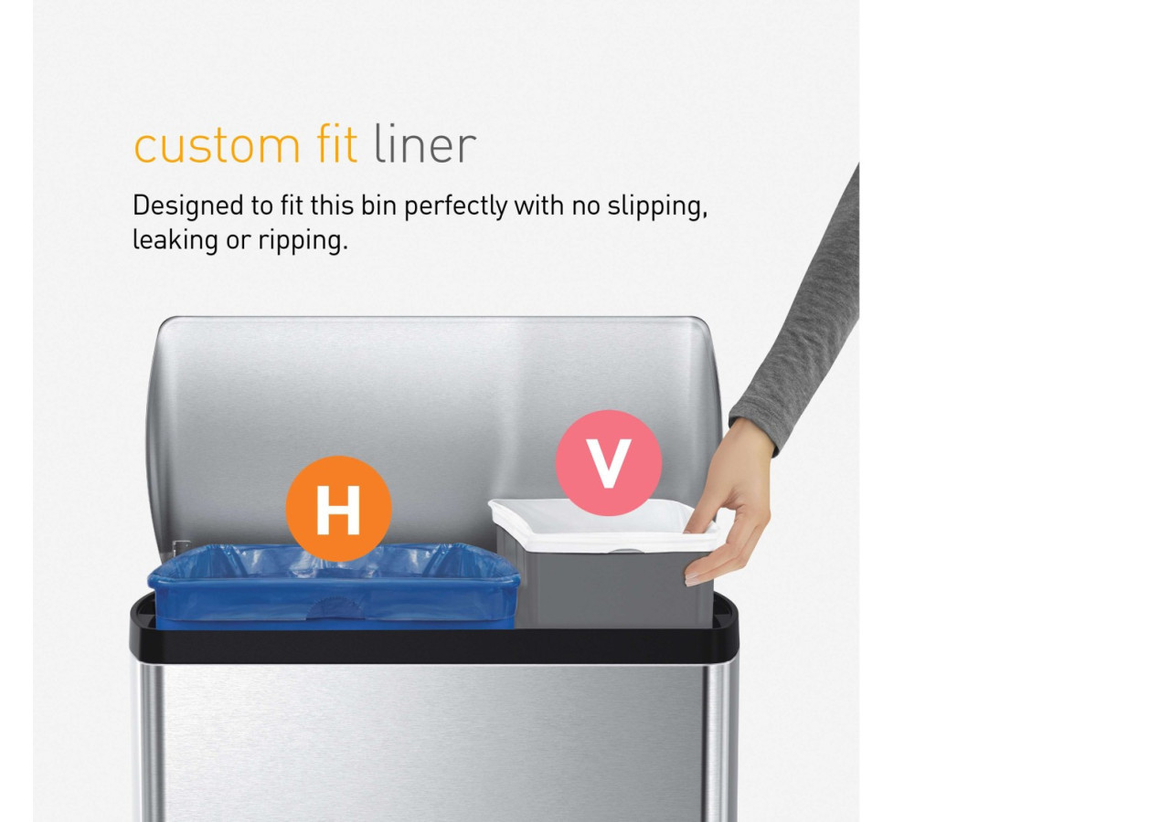 Son pédale en acier robuste assure une utilisation durable, tandis que le couvercle se ferme silencieusement. Grâce à ses deux compartiments, le tri des déchets devient un jeu d'enfant. Les sacs-poubelles H-code et V-code de Simplehuman s'ajustent parfaitement, gardant le tout discret et ordonné. Pratique et esthétique, cette poubelle est un incontournable pour une cuisine fonctionnelle.