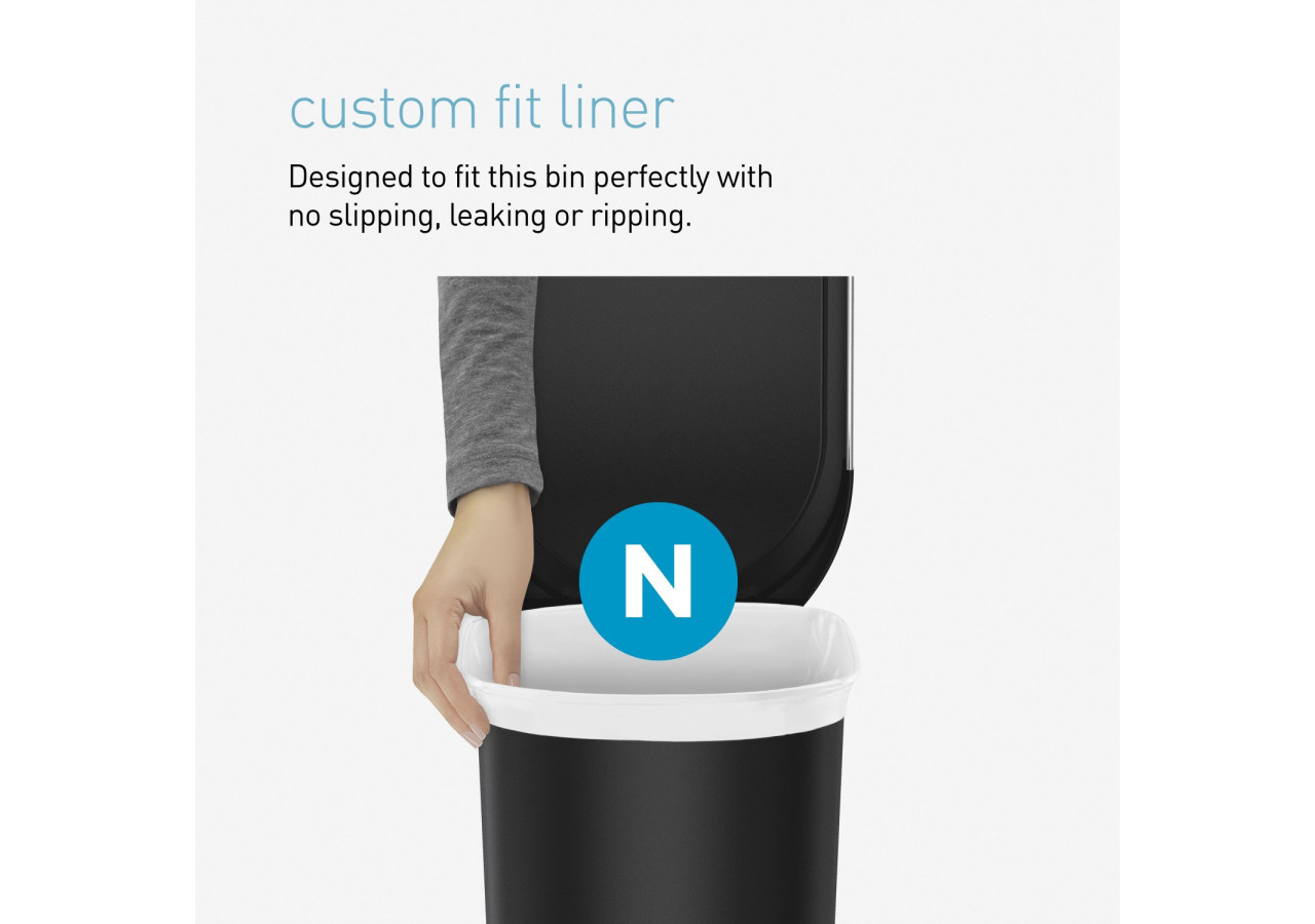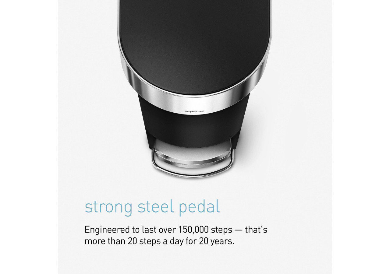 La poubelle Slim de 40 litres de Simplehuman est conçue pour optimiser l'espace dans votre cuisine. Son design compact lui permet de s'intégrer facilement dans les espaces restreints comme entre les meubles. Grâce à son couvercle en acier inoxydable avec un système de fermeture silencieuse, elle maintient les sacs à l'abri des regards.