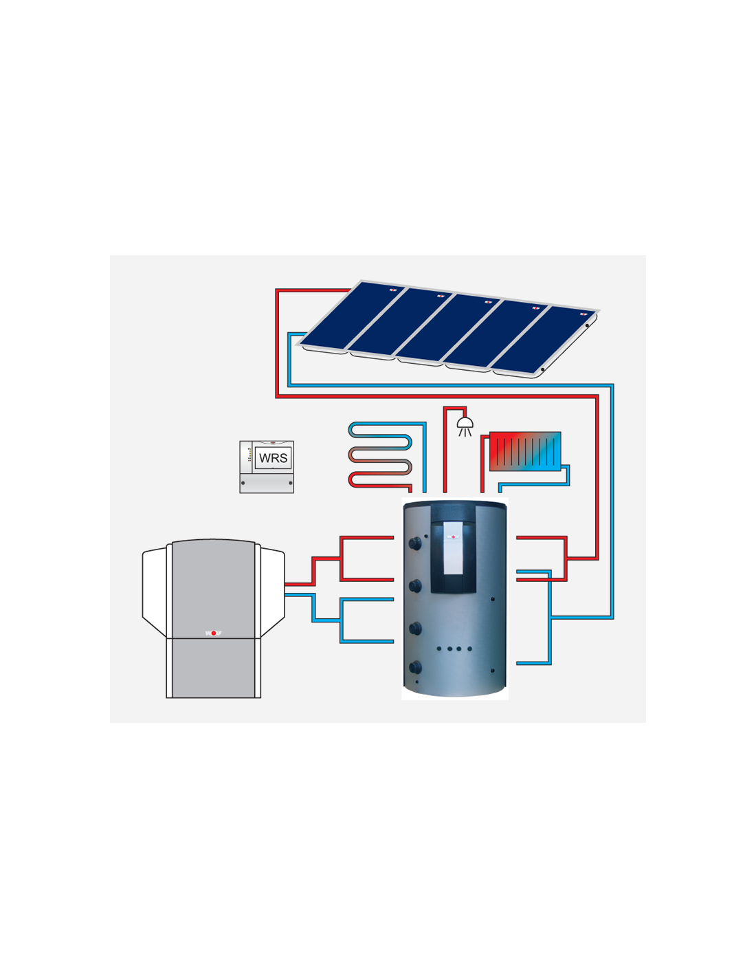 • Les composants hydrauliques comme la station d'eau fraîche, les 2 circuits mélangés et le groupe de pompes solaires peuvent être installés au mur