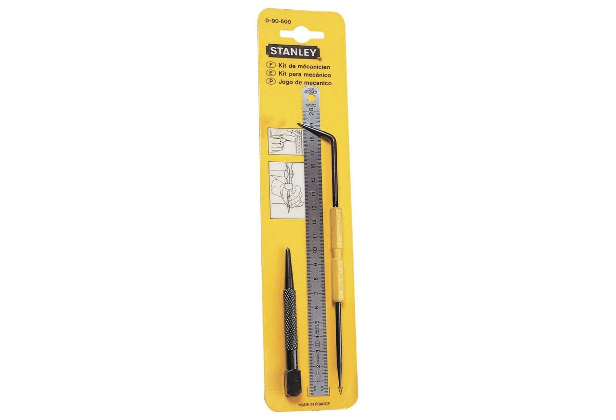- Composition de 3 produits de traçage : 1 réglet inox de 200mm x 13mm gradué recto, 1 pointeau tête carrée, 1 pointe à tracer