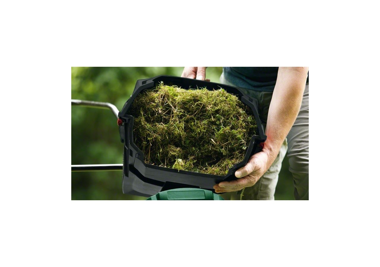 - Utilisation pratique : le grand bac de ramassage de 50 L permet de travailler longtemps sans avoir à vider le bac.