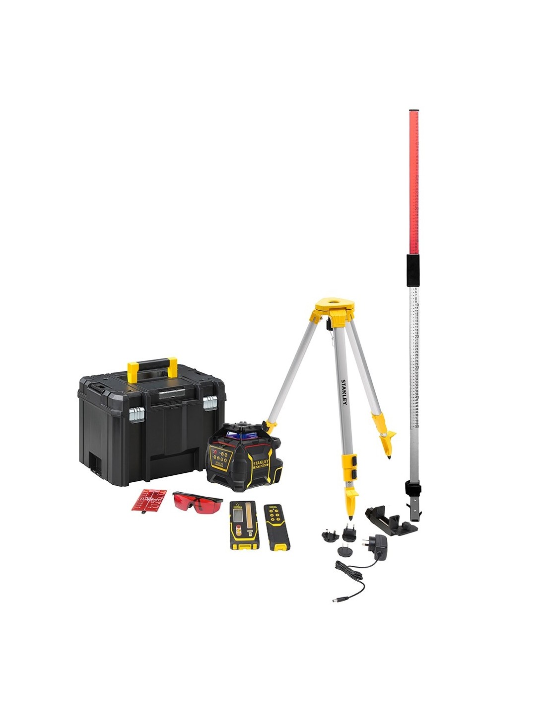 - Pack complet : 1 niveau laser rotatif RL600L (Lunettes-Cible-Cellule-Mallette PRO-STACK™-Télécommande-Chargeur voiture) + 1 trépied aluminium standard (Profilé aluminium - Blocage des pieds par système “quick clamps” - Plage d’utilisation de 75 à 153 cm -
