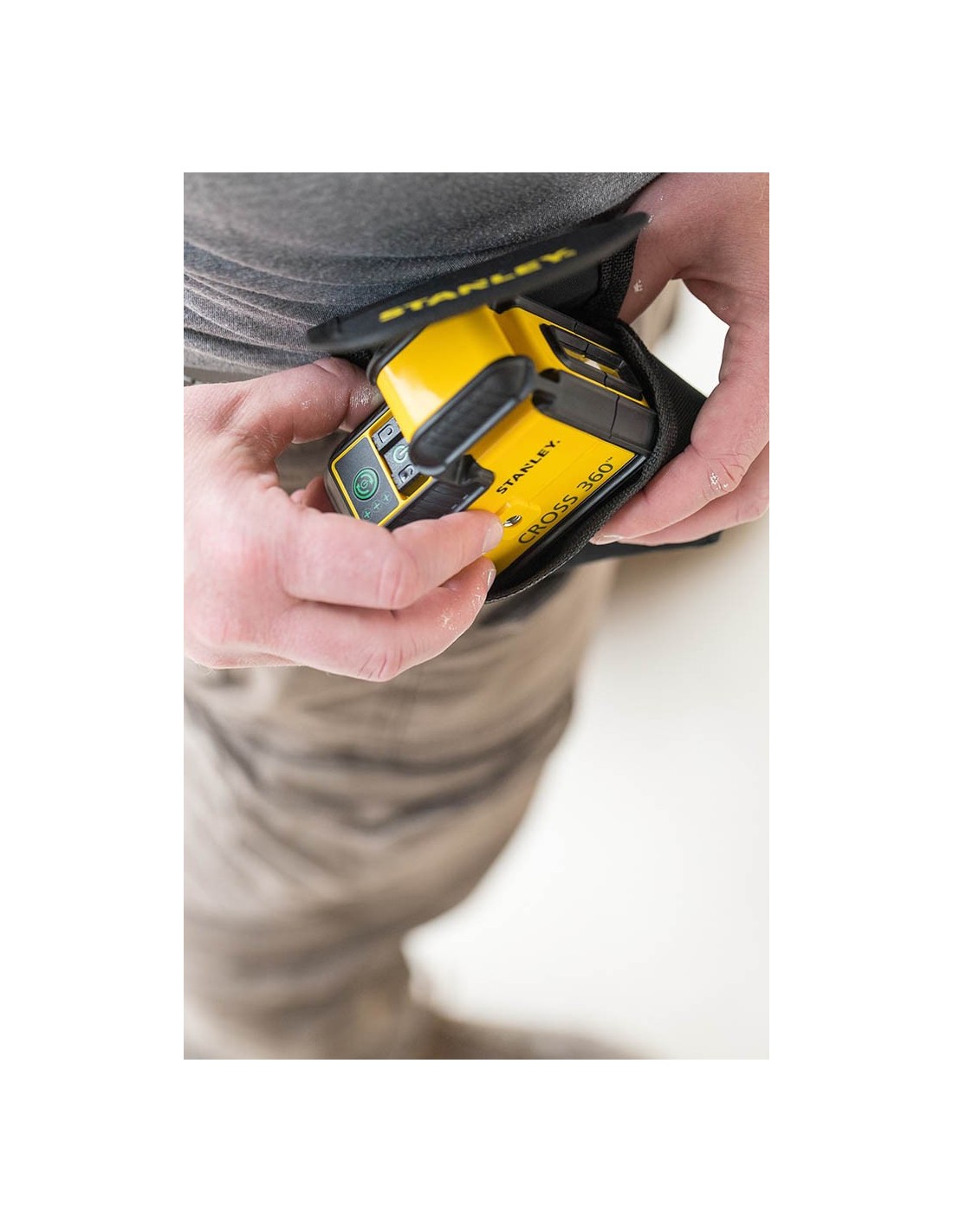 - Fourni avec le Quick link , bras articulé permettant d’orienter le laser dans tous les sens, piles et étui de transport avec attache ceinture