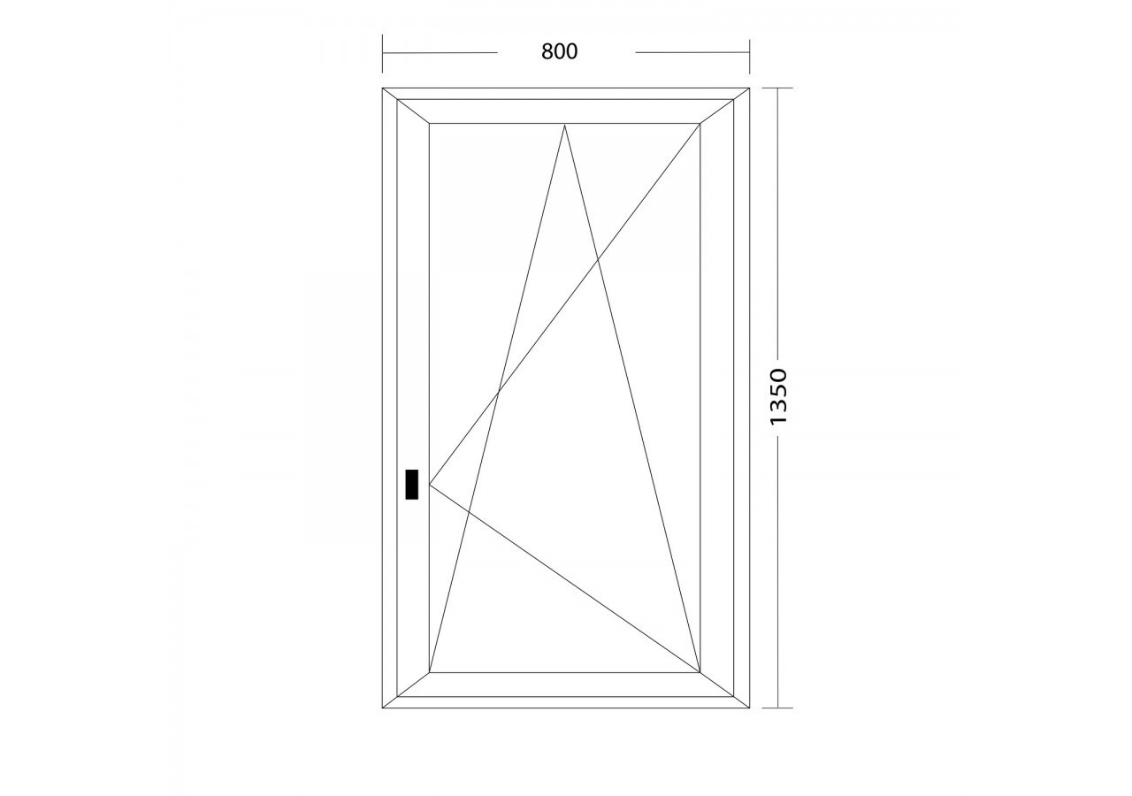 Pour cette fenêtre, la largeur du châssis est de 800 mm et la hauteur du châssis est de 1350 mm.