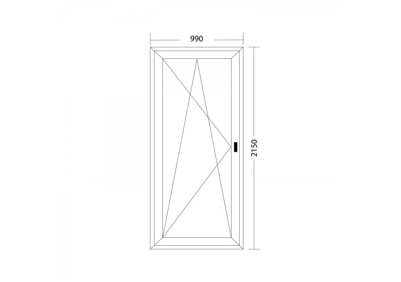 Pour cette porte-fenêtre, la largeur du châssis est de 990 mm et la hauteur du châssis est de 2150 mm.