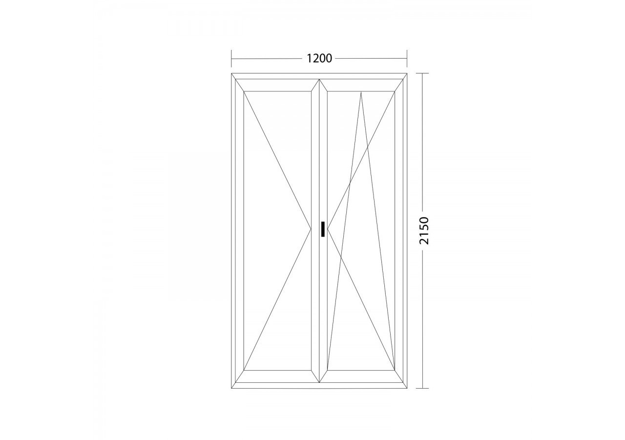 Pour cette porte-fenêtre, la largeur du châssis est de 1200 mm et la hauteur du châssis est de 2150 mm.