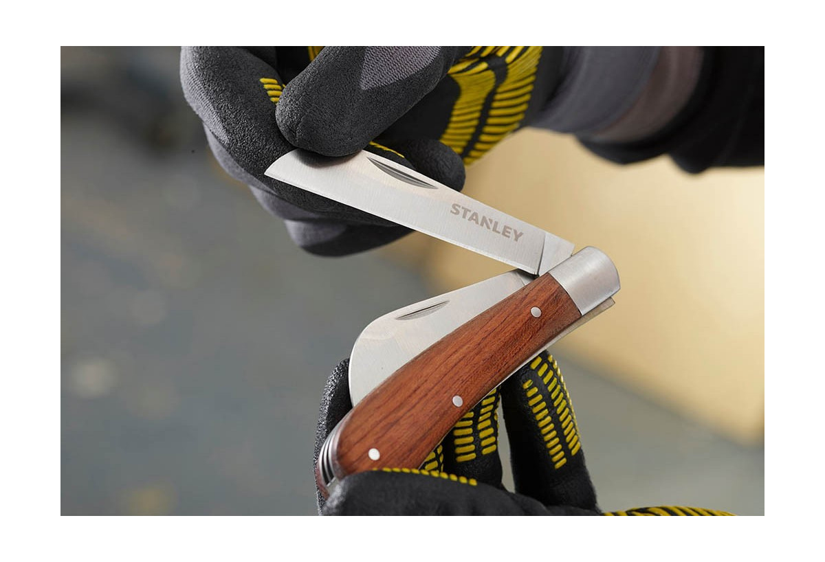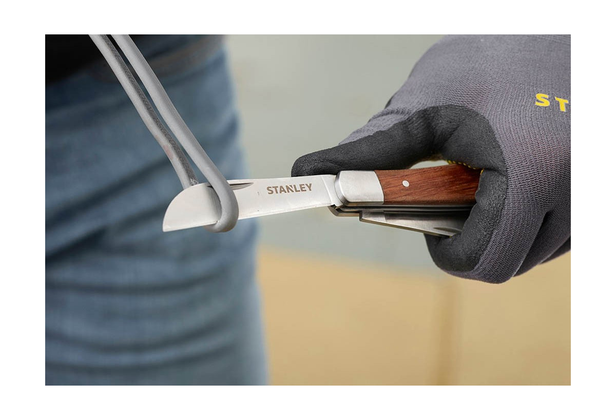 - Lame de type serpette pour dénuder (70mm) et lame droite pour couper ou effiler (70mm) avec 3 positions possibles (fermé - 90° - 180°)