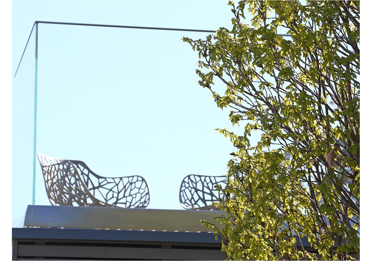 Cette balustrade tout en verre vous procure une vue sans limites tout en apportant de l'élégance à votre façade extérieure.