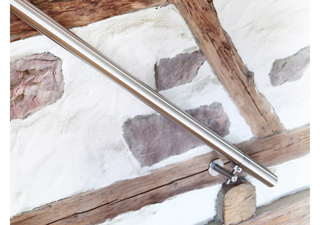 Main courante à la forme ronde et au design intemporel. Grâce à la console flexible, elle s'intègre bien dans n'importe quel environement environnement.