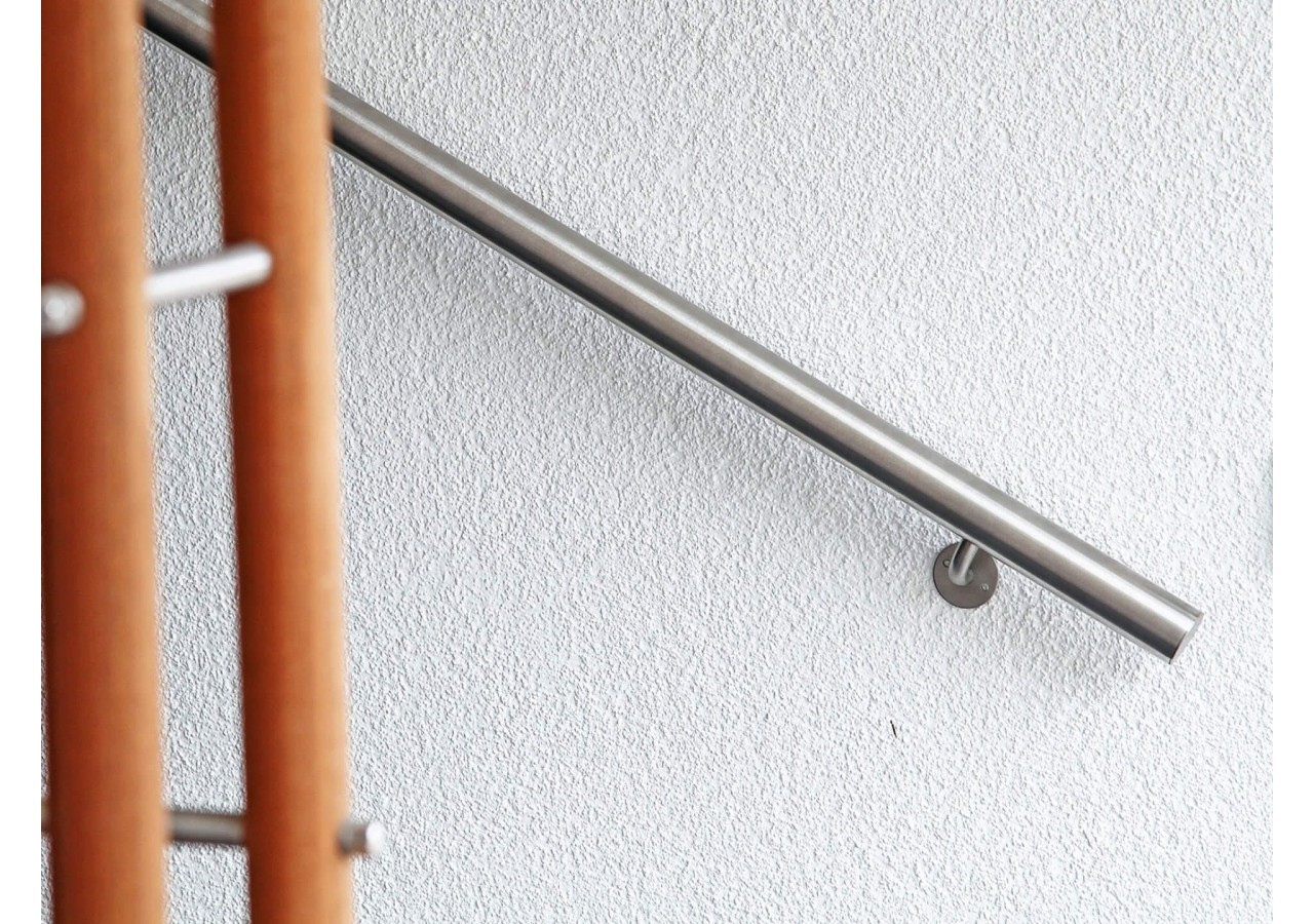 Cette main courante impressionne par son éclat mat, qui crée un motif de meulage fin typique de l'acier inoxydable.