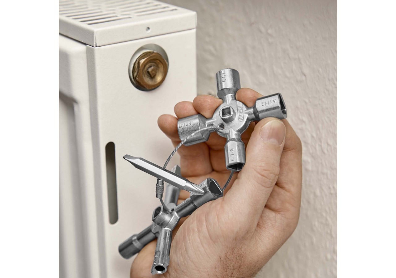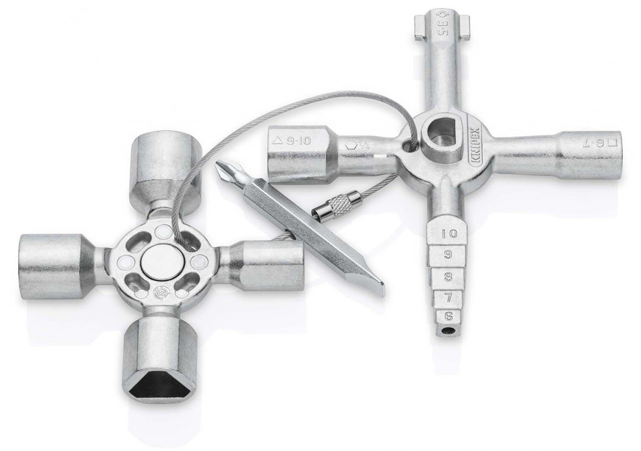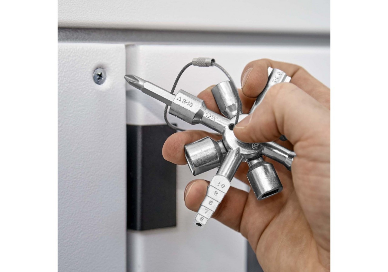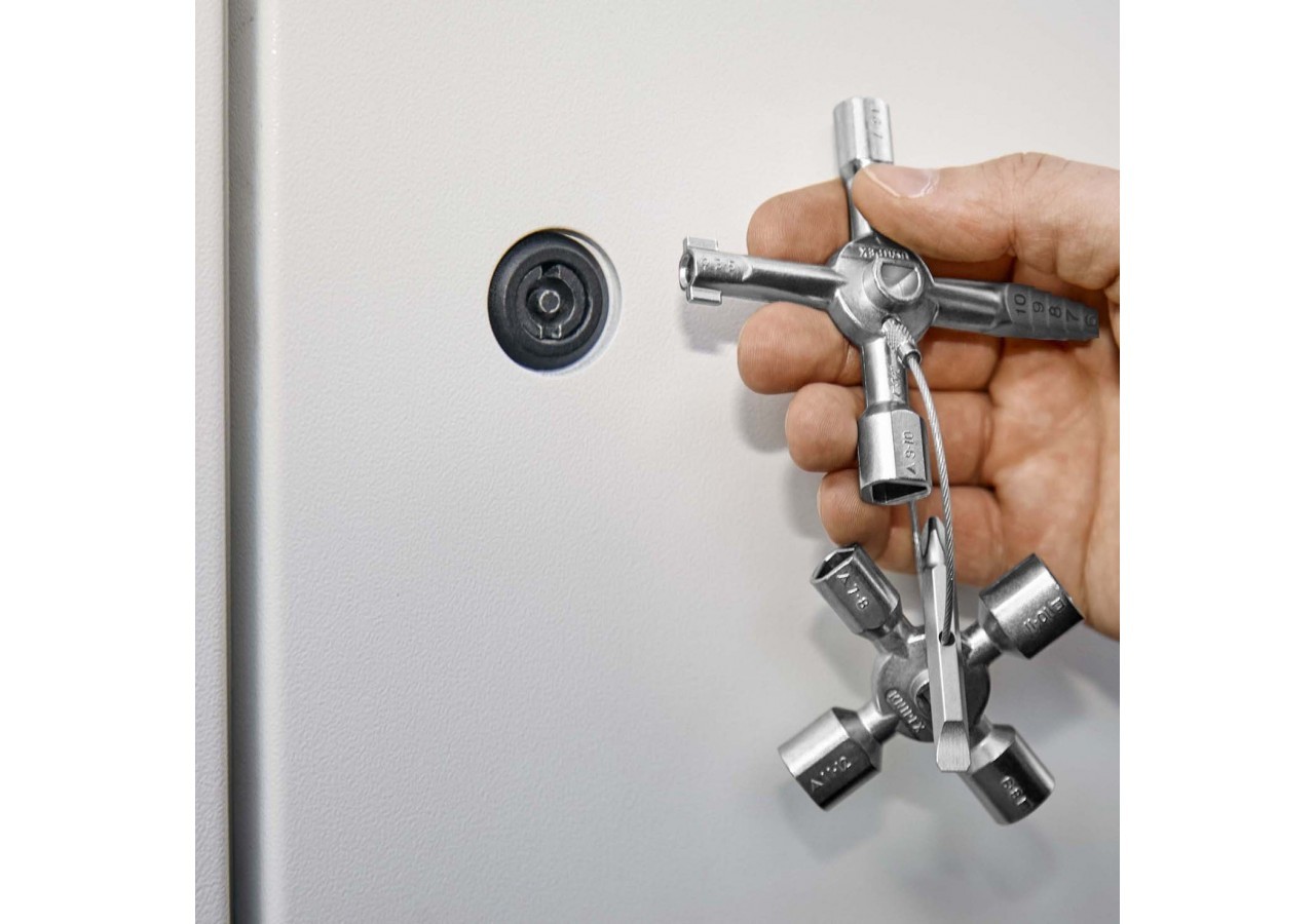 - Clé multifonctionnelle pour l'actionnement des fermetures depuis les zones techniques des bâtiments (chauffage et sanitaire, technique de climatisation et de ventilation, électrotechnique), alimentation en gaz et en eau et systèmes d'arrêt