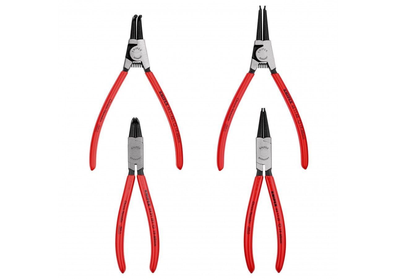 - Quatre pinces usuelles à circlips intérieurs et extérieurs
