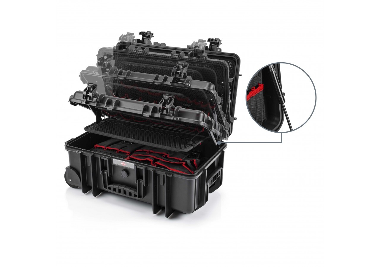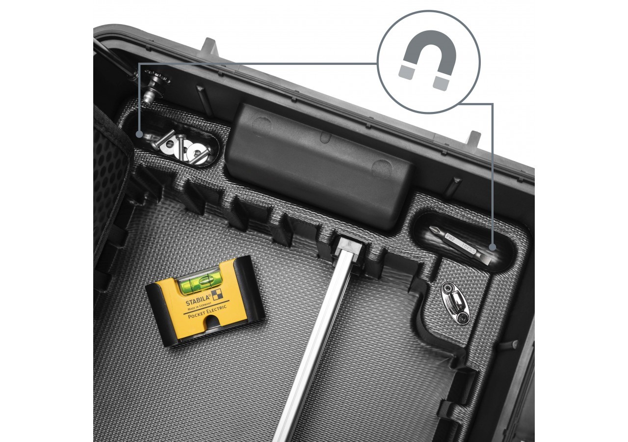 - Réalisez intelligemment vos tâches difficiles : flexibilité maximale grâce aux 19 poches à outils et 61 boucles de retenue, ainsi qu'au système de séparation en aluminium adaptable