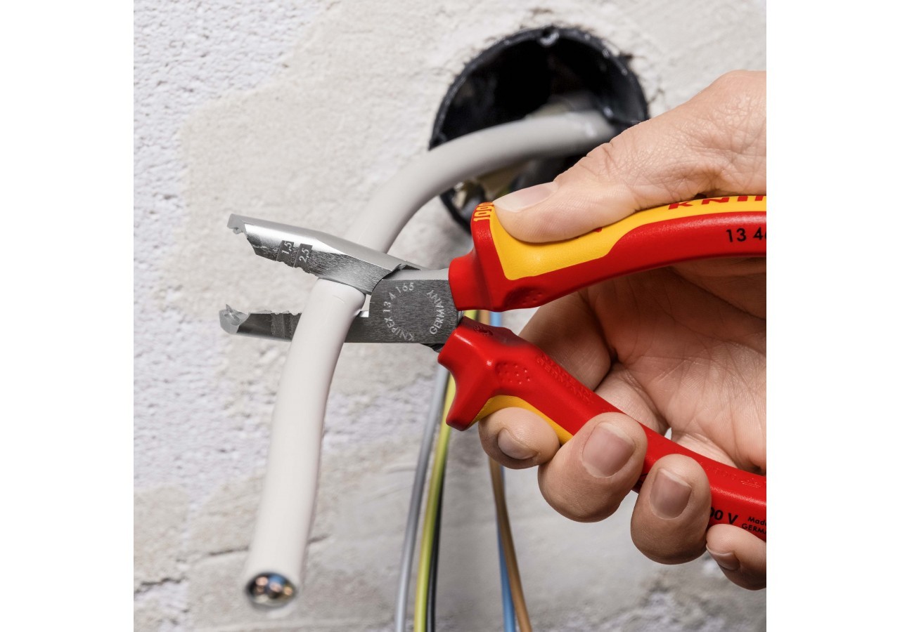 - Accès facilité dans les boîtes d’encastrement profondes grâce à la forme élancée de la tête et à l‘inclinaison optimale du coupe-gaine