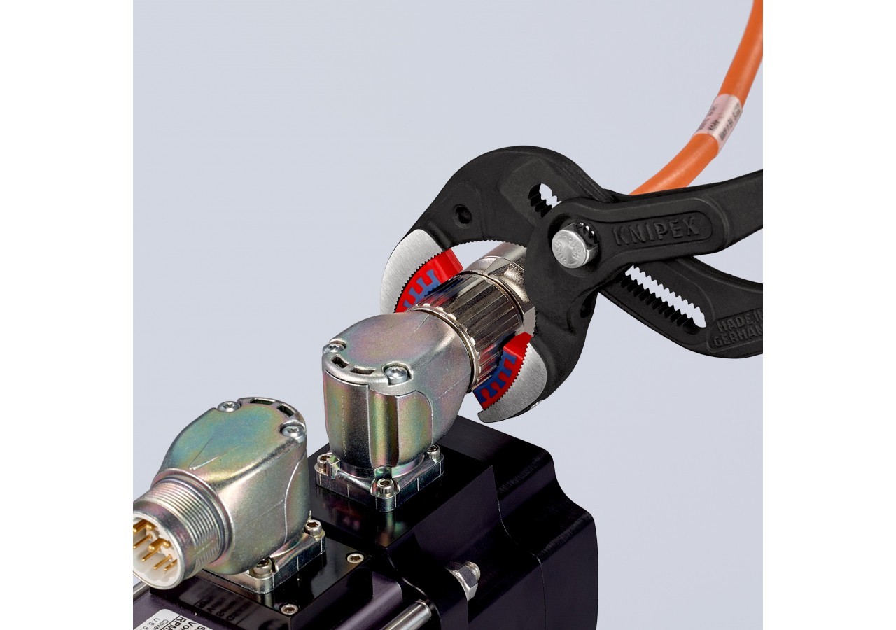 - Pince chromée atramentisée noir ; avec mors de protection vissés, interchangeables et en plastique