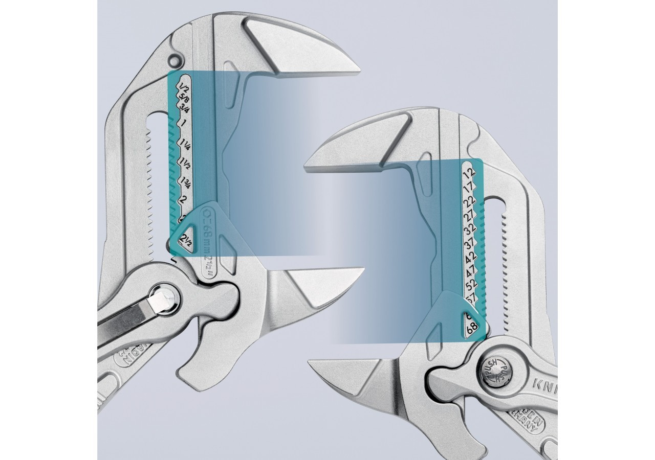 - Les graduations laser (systèmes métrique et impérial) permettent de prérégler la largeur d'ouverture