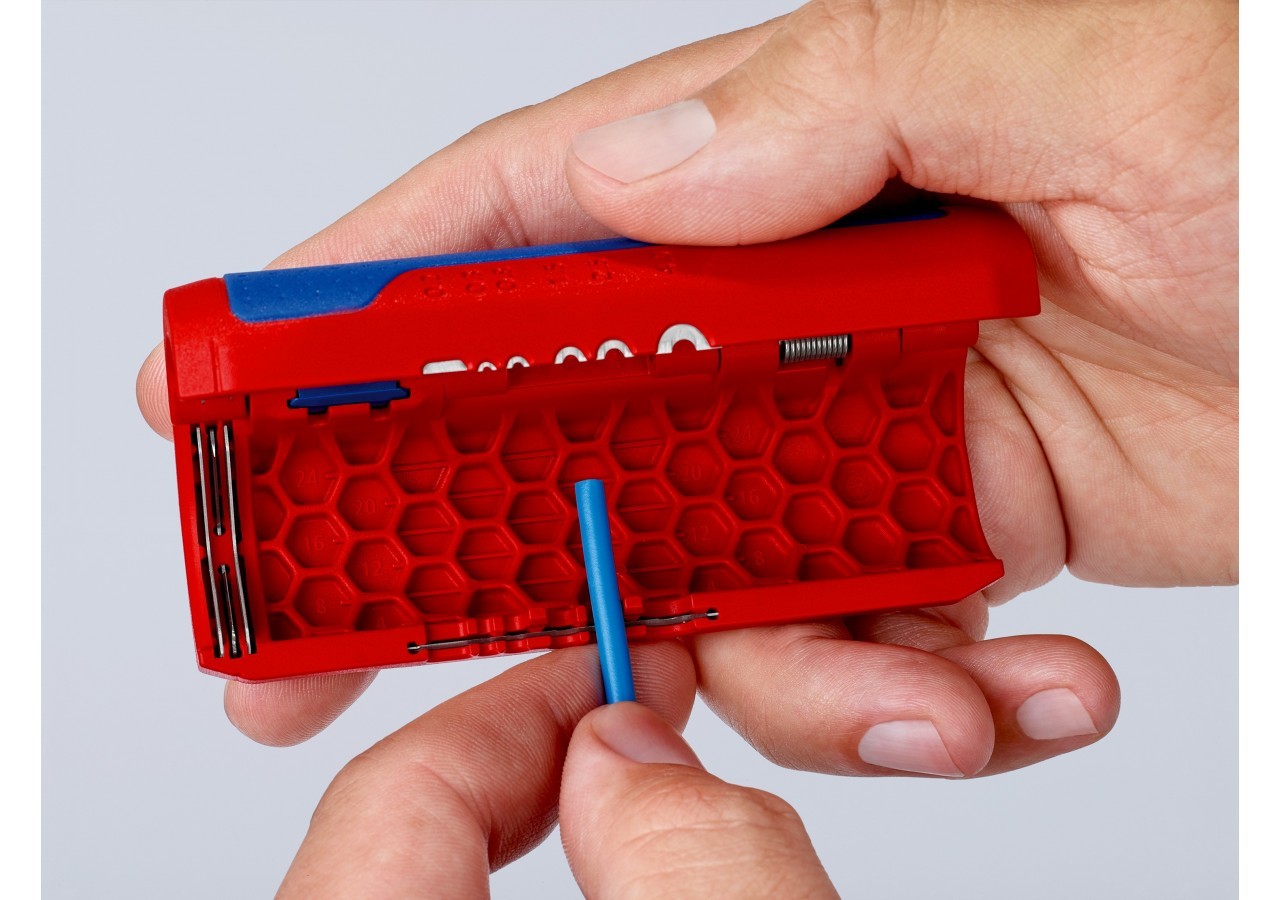 - Graduation à l’intérieur pour un dénudage homogène des câbles, lisible pour les droitiers et les gauchers