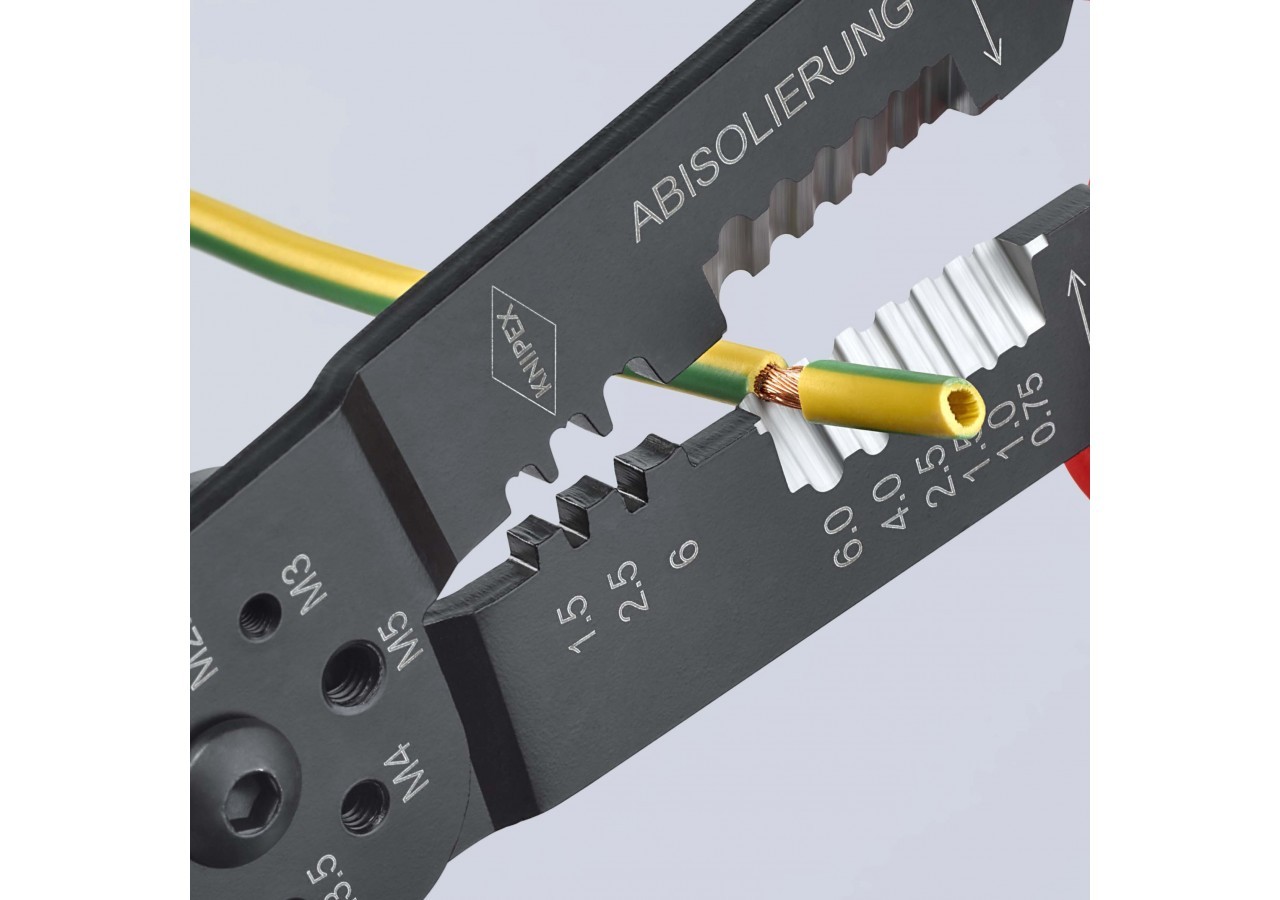 - Pour couper et dénuder les câbles et pour sertir les cosses et les connecteurs isolés, non isolés et les connecteurs ouverts