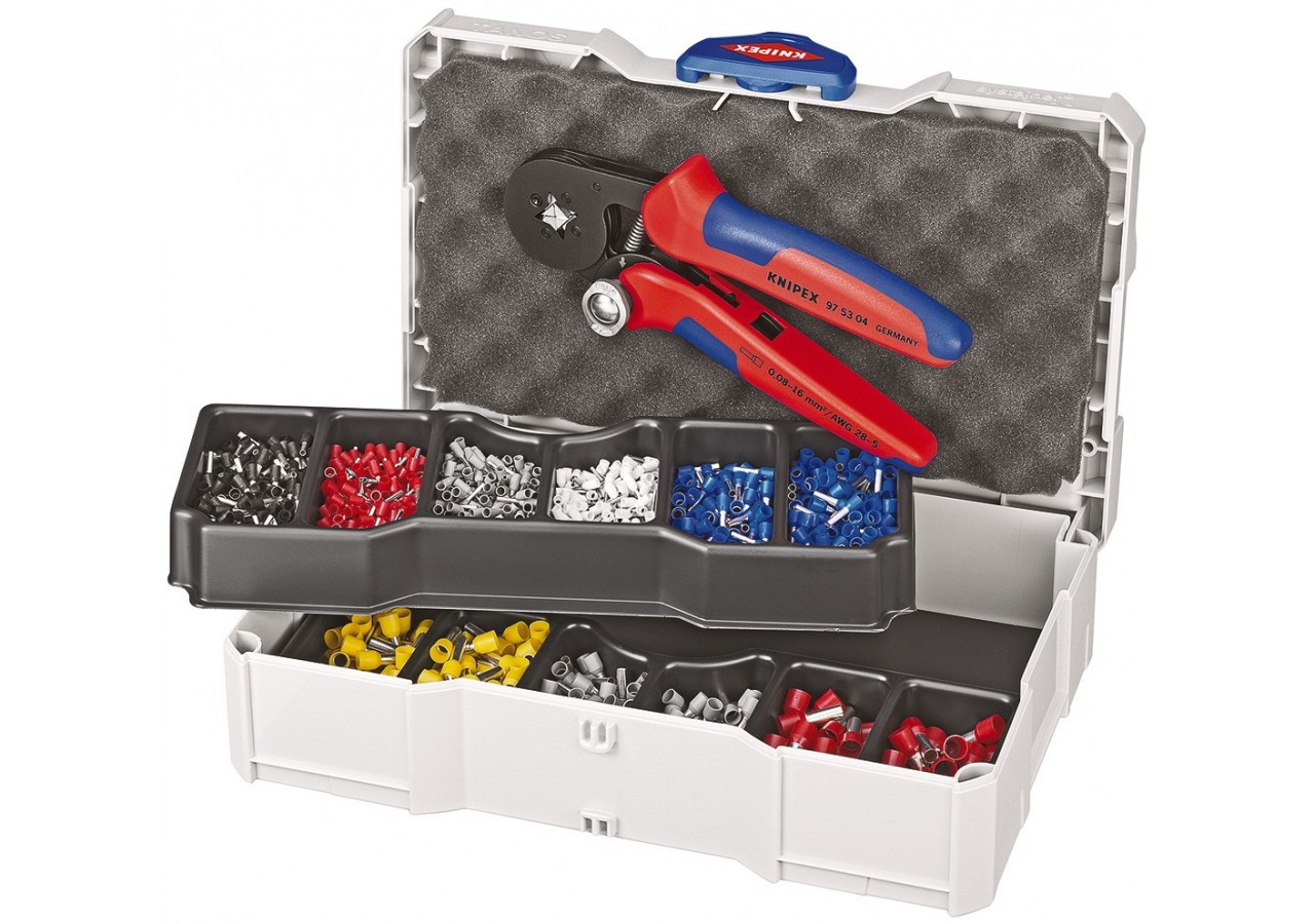 - Avec pince à sertir auto-ajustable pour les embouts de câble 97 53 04