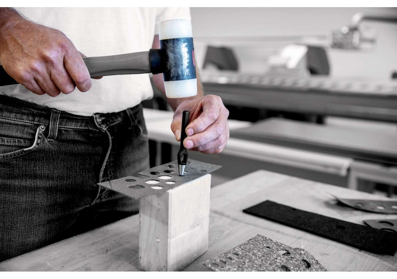 - Des panneaux de bois multicouches ou des panneaux de polyamide doivent être utilisés comme support de frappe lors du poinçonnage