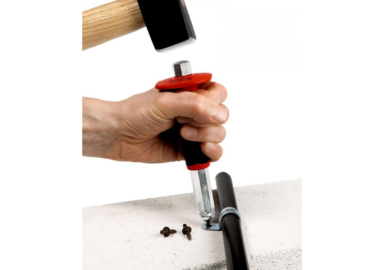- Pour fixer des colliers ou bandes à l’aide de clous à collerette directement dans le béton (sans préperçage)
