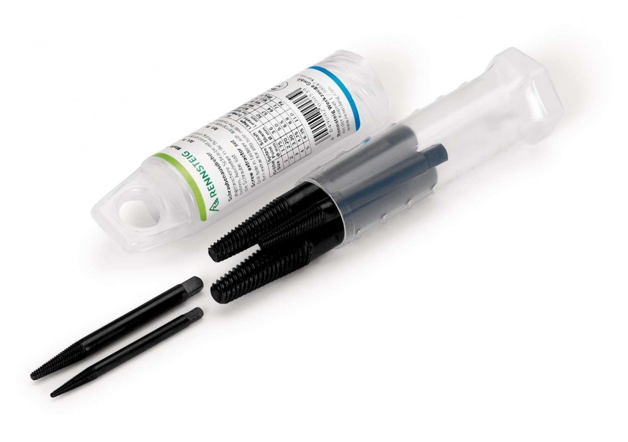- Différents assortiments d'extracteurs de vis dans un tube en plastique