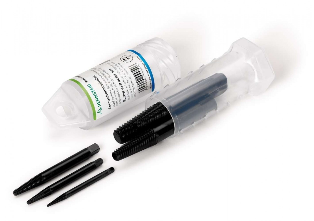 - Différents assortiments d'extracteurs de vis dans un tube en plastique
