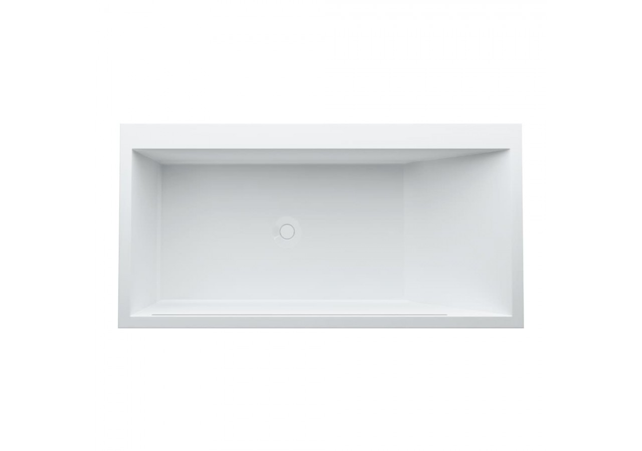 Baignoire, version encastrée, en solid surface Sentec, installation angle à gauche, inclinaison dosseret à droite, avec cadre