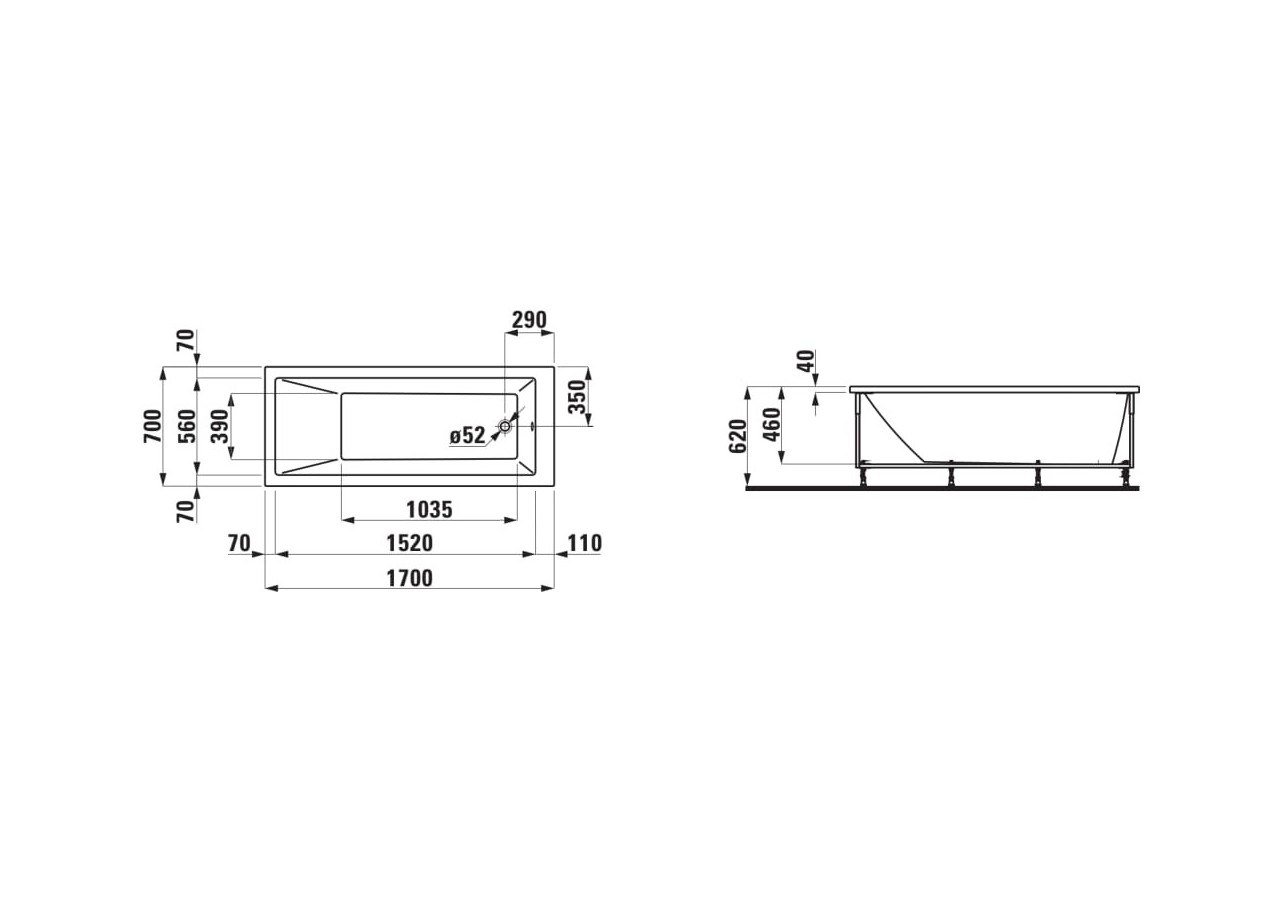 Dimensions: 1700 x 700 x 620 mm (longueur, largeur, hauteur)