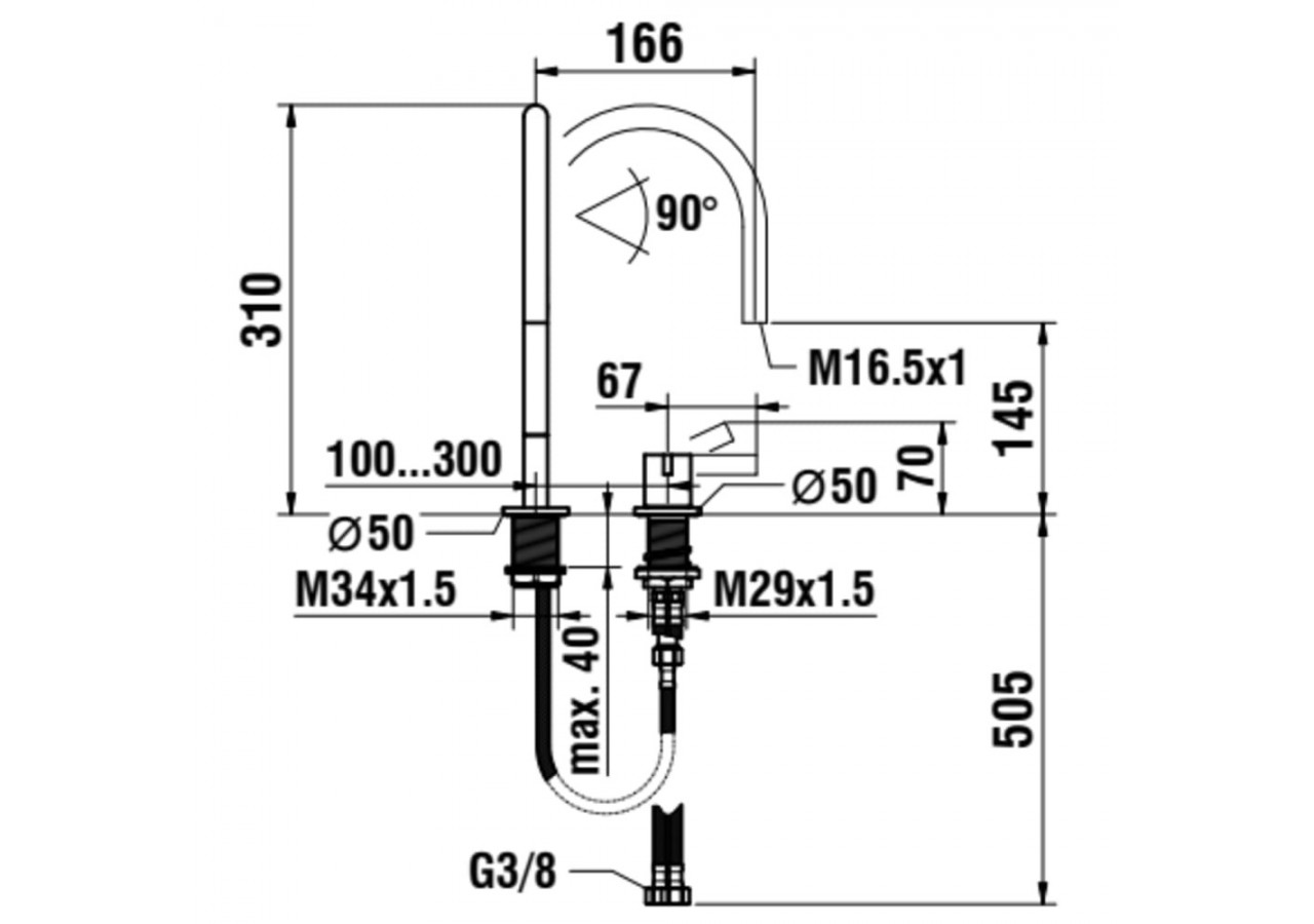 Mitigeur de lavabo 2 trous, bec orientable 166 mm, sans vidage