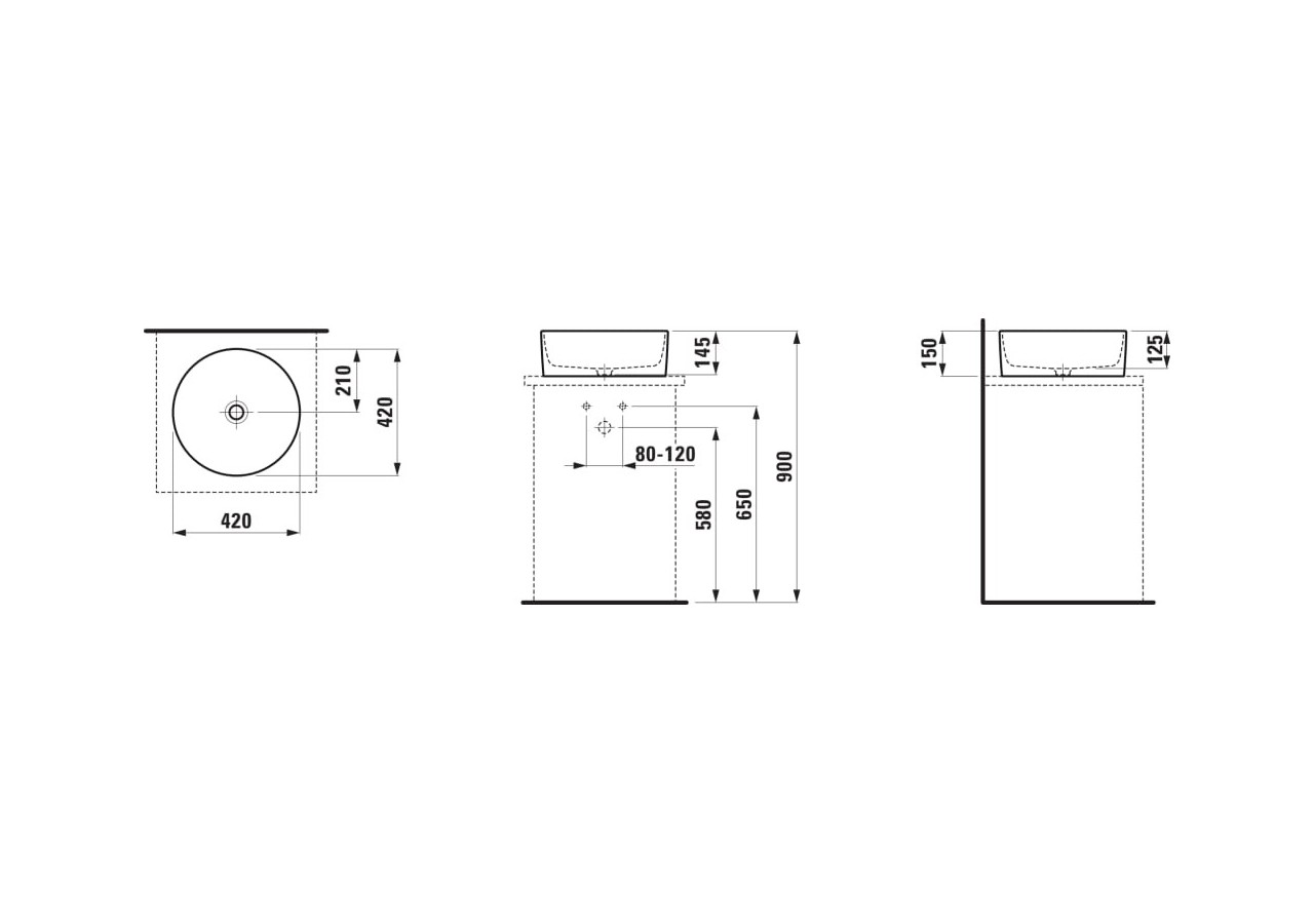 Dimensions: 420 x 420 x 150 mm (longueur, largeur, hauteur)