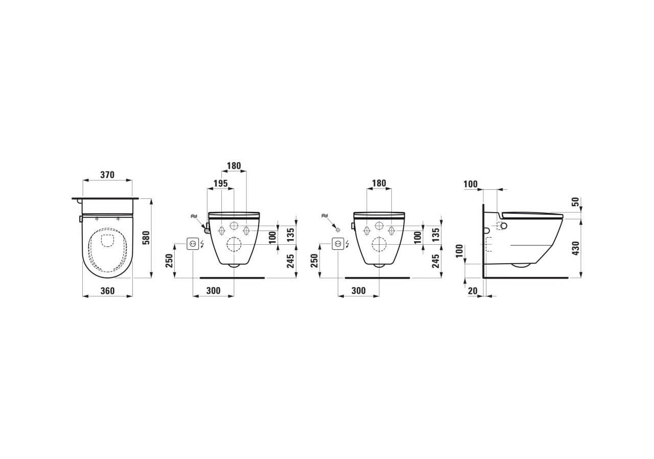 - Option: avec trou latéral pour le raccordement d'eau externe 19,5 cm