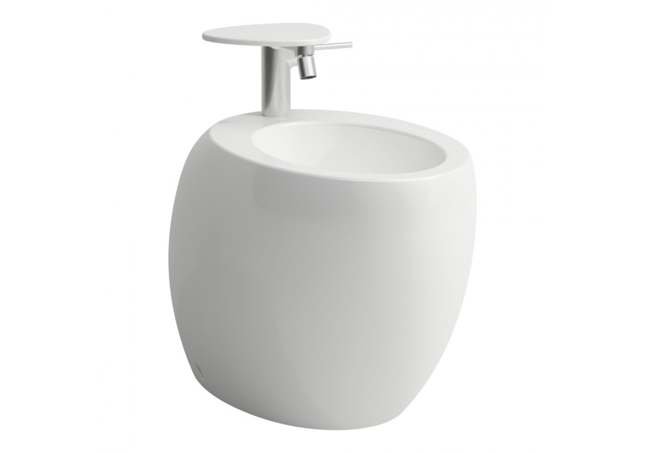 Bidet au sol, avec trop-plein caché, avec cache-bonde en céramique