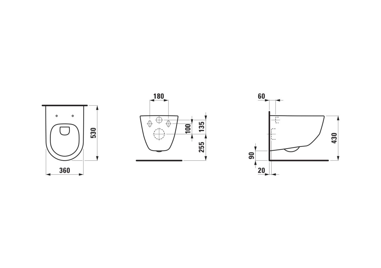 Pack WC comprenant cuvette suspendue carénée sans bride fixations cachées 820966, abattant slim frein de chute déclipsable 898966 et kit isolation phonique