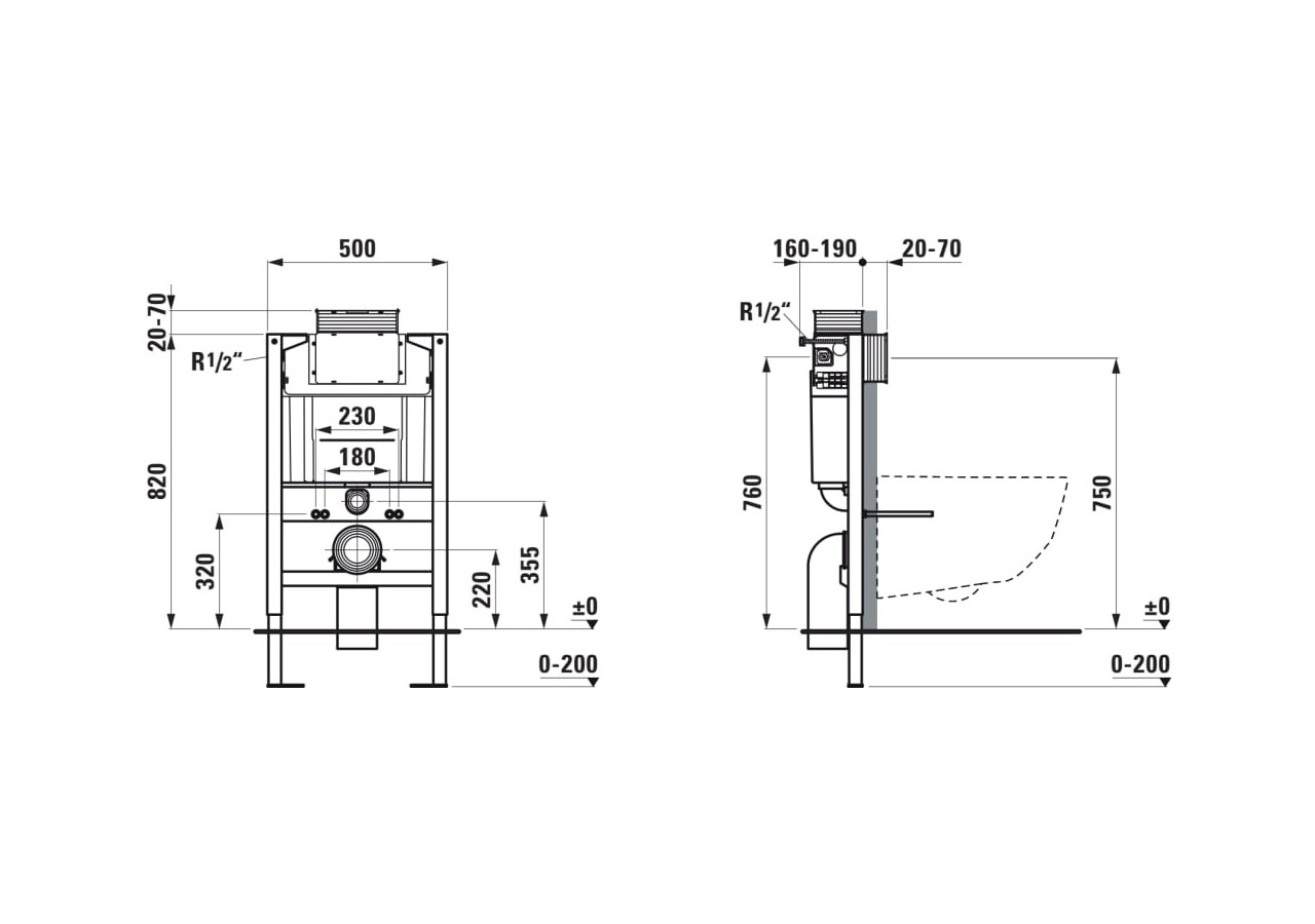 Bâti-support CWL1 pour WC suspendu, hauteur 82 cm, chasse d'eau duale 3/6 L, réglable en 3/4.5 L