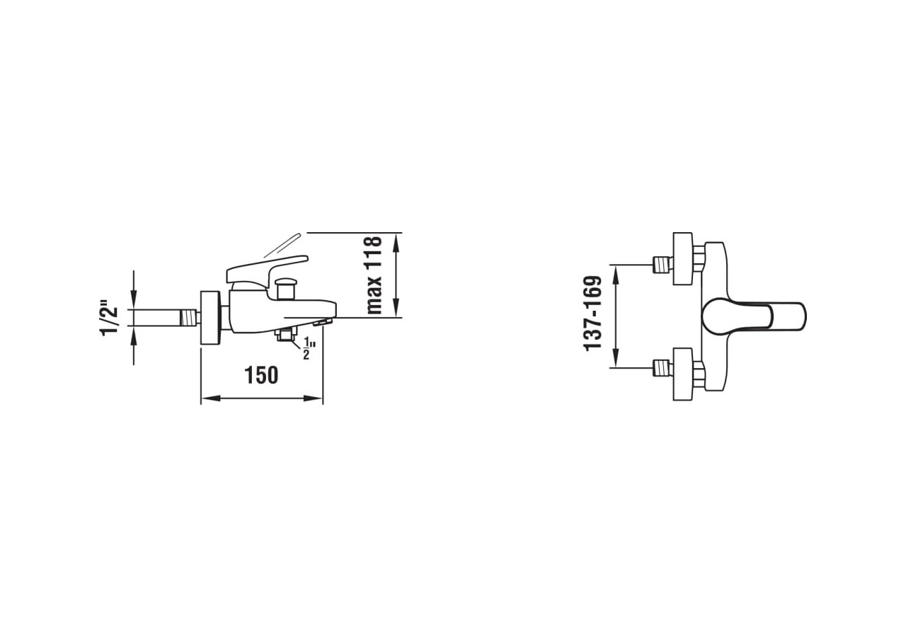 Mitigeur bain-douche mural, avec inverseur, avec flexible et douchette