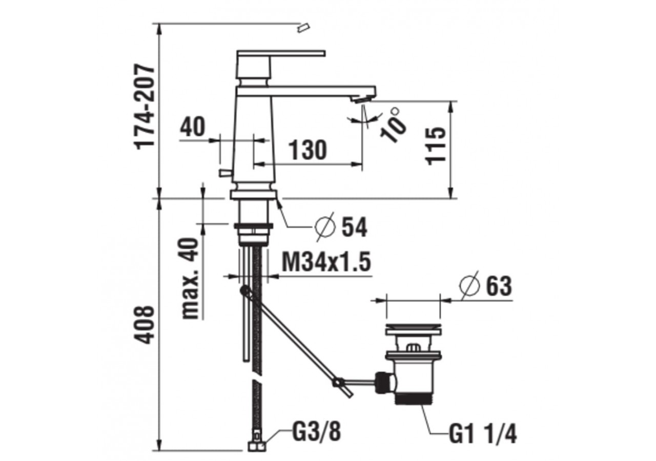 Mitigeur de lavabo monotrou, bec fixe 130 mm, avec vidage