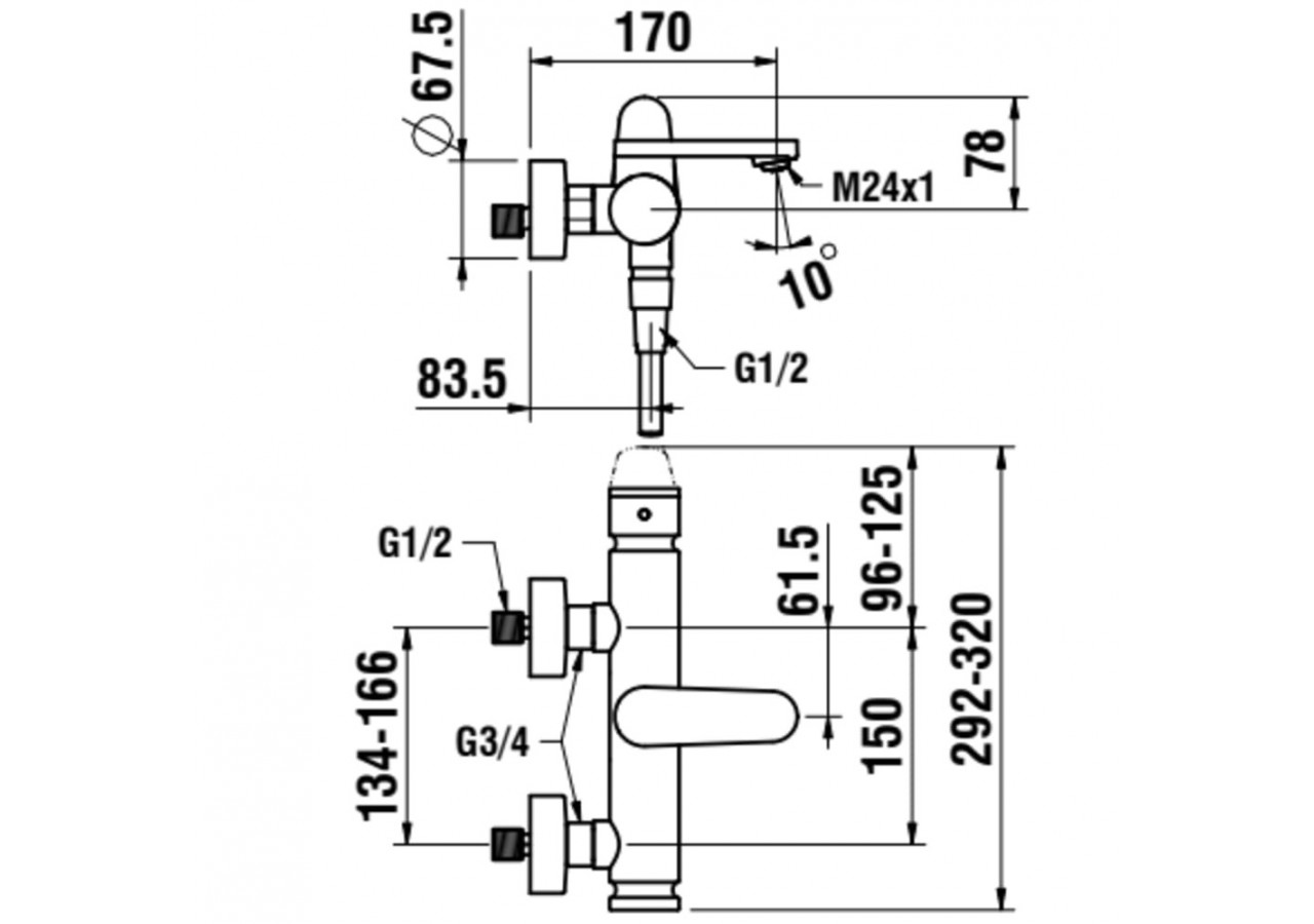 Mitigeur bain-douche mural thermostatique, avec flexible et douchette
