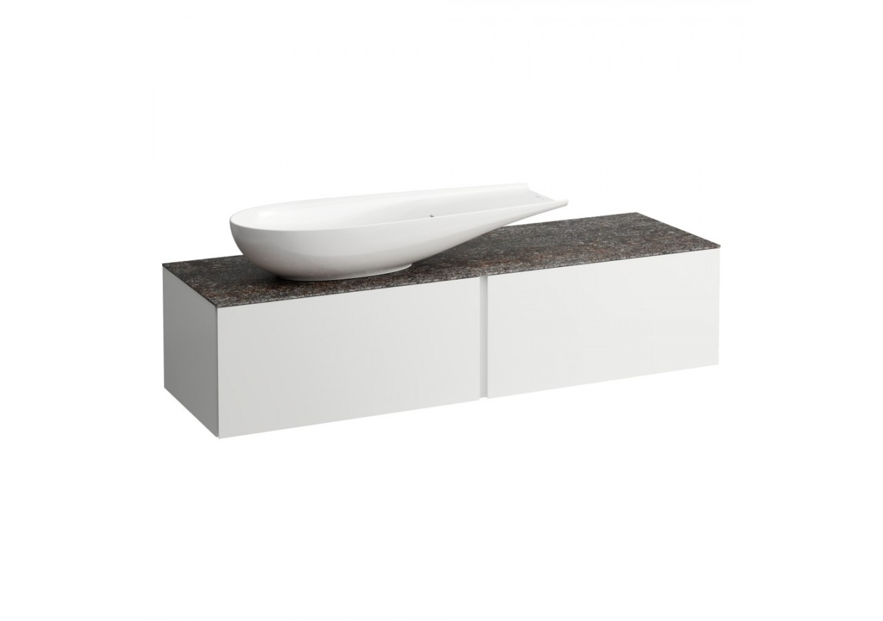 Meuble sous vasque 1600, 2 tiroirs, avec découpe à gauche, plan Marrone Naturale, trou pré-percé pour la robinetterie, pour lavabo H818974