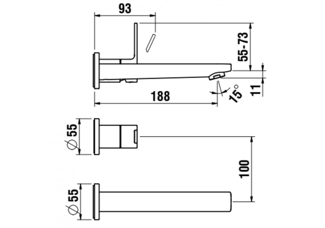 Mitigeur mural pour Simibox 2-Point, bec fixe 188 mm