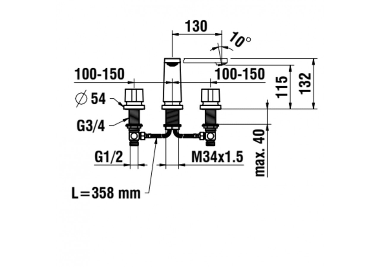 Mélangeur de lavabo 3 trous, bec fixe 130 mm, sans vidage
