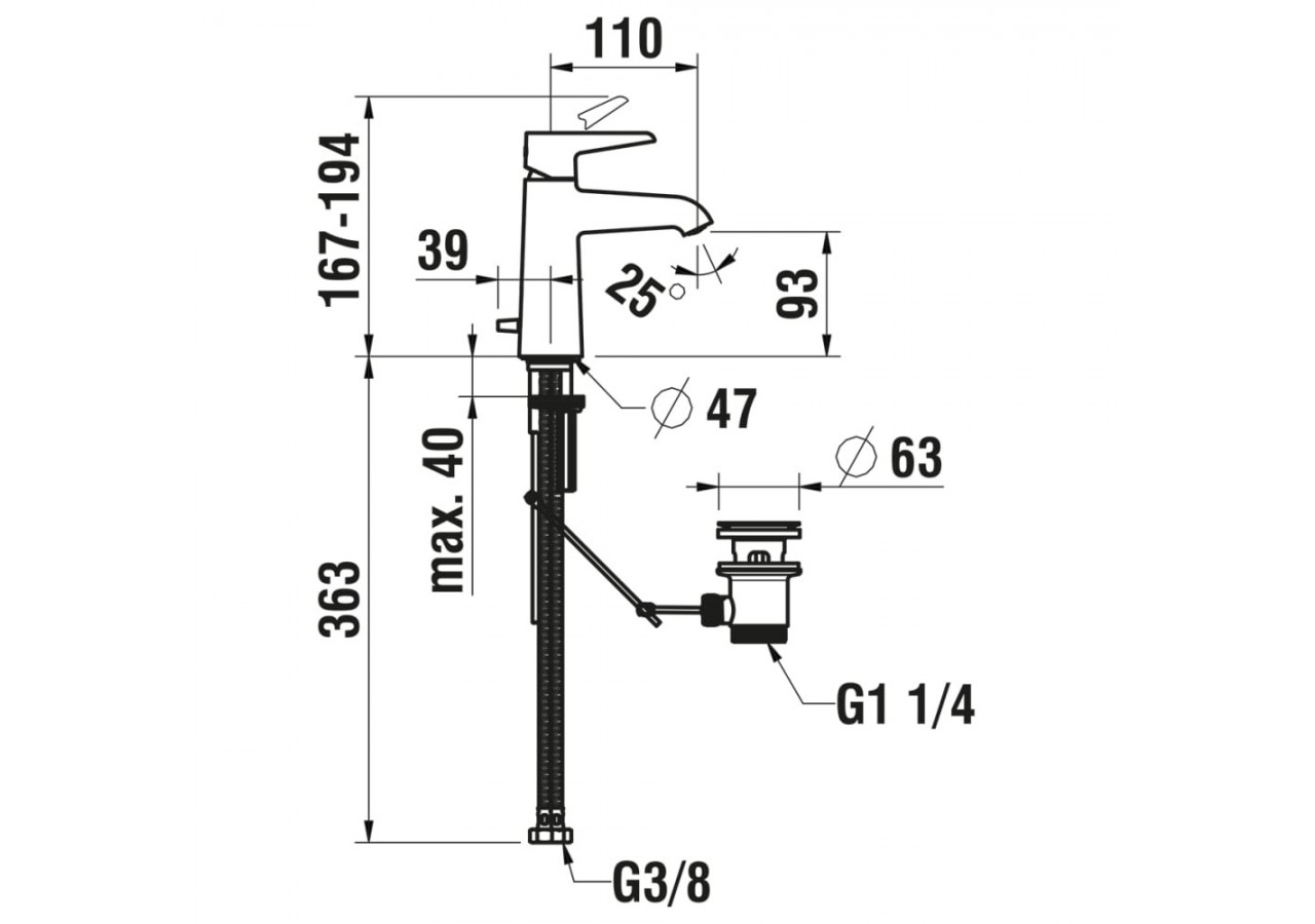 Mitigeur de lavabo cartouche Eco+, bec fixe 110 mm, avec vidage