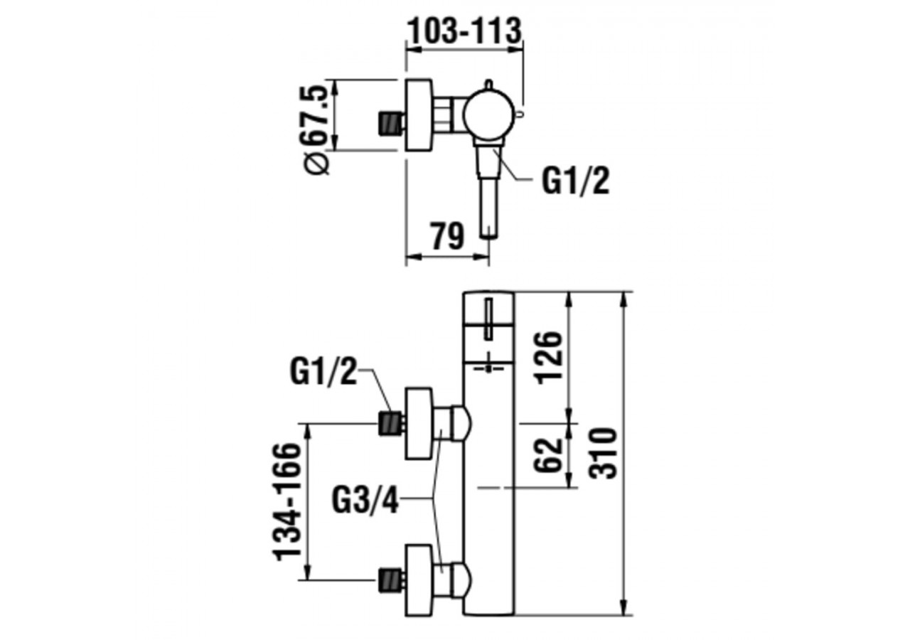 Mitigeur de douche thermostatique mural, avec flexible et douchette