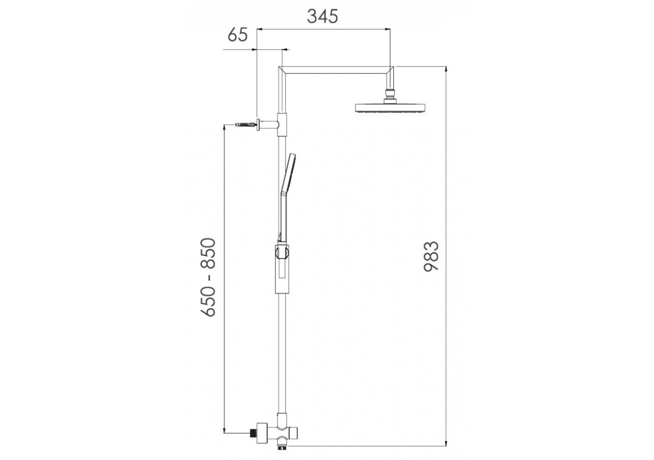 • Inverseur 3 voies : douche de tête, douche à main ou douche de tête et douche à main combinées
