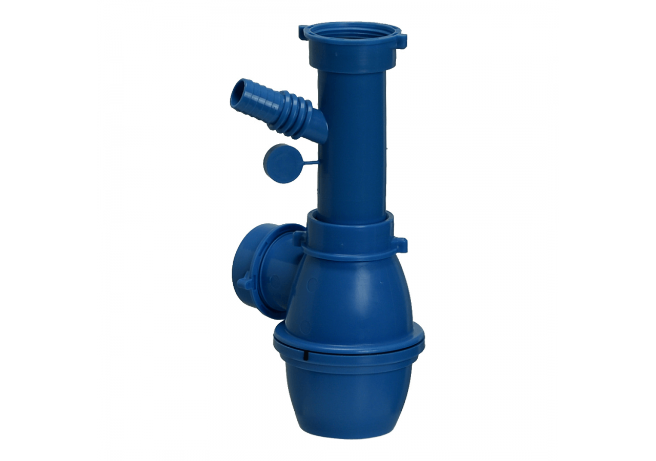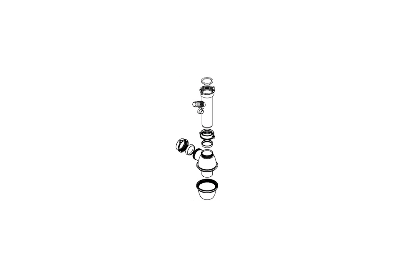 Siphon à bouteille dévissable pour 1 cuve, sortie au mur, avec 1 prise machine à laver/lave vaisselles
