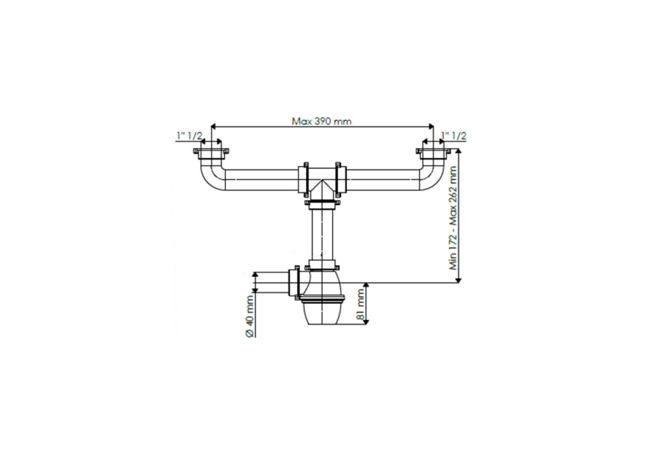 Siphon 1 1/2 à bouteille sortie Ø 40mm filetée 2 cuves réglable sans prise machine à laver/lave vaisselles