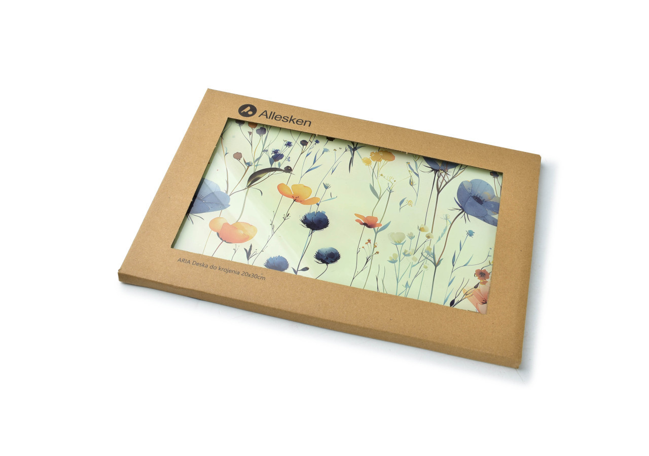 Deska szklana z kolekcji ARIA marki ALLESKEN to doskonałe połączenie funkcjonalności i eleganckiego designu. Wykonana z wysokiej jakości szkła, nie tylko jest wyjątkowo trwała, ale także łatwa w utrzymaniu czystości, co czyni ją idealną dla każdej nowoczesnej kuchni. Deska prezentuje się lekko i subtelnie, a jednocześnie jest odporna na odkształcenia i zarysowania, zachowując swój estetyczny wygląd przez długi czas. Antypoślizgowe stopy zapewniają stabilność podczas krojenia, a elementy ozdobne z kolekcji ARIA nadają desce wyjątkowy charakter, który wyróżni ją na tle standardowych akcesoriów kuchennych. Dzięki wymiarom deski, przygotowanie składników do różnorodnych potraw staje się niezwykle komfortowe, a jej uniwersalność umożliwia również wykorzystanie jej jako stylowej podstawki pod gorące naczynia lub efektowne prezentacji przekąsek podczas uroczystych przyjęć. wymiar: 20x30x0,4cm waga: 552g / 600g z opakowaniem opakowanie jednostkowe: eco box z okienkiem 30,5x20,5xh1cm